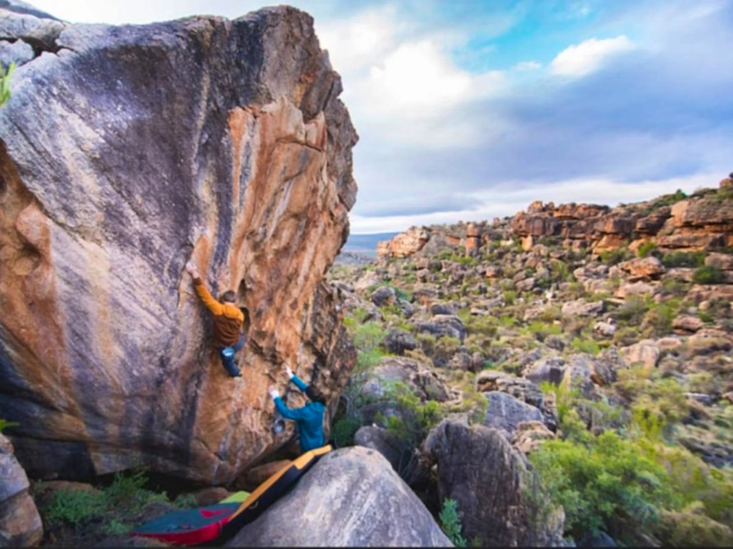 The Biedouw Valley is a boulderer’s dream. With its abundance of striking sandstone formations, grippy rock surfaces, and a variety of problem grades, it’s no surprise this area is considered one of the best bouldering destinations in South Africa.